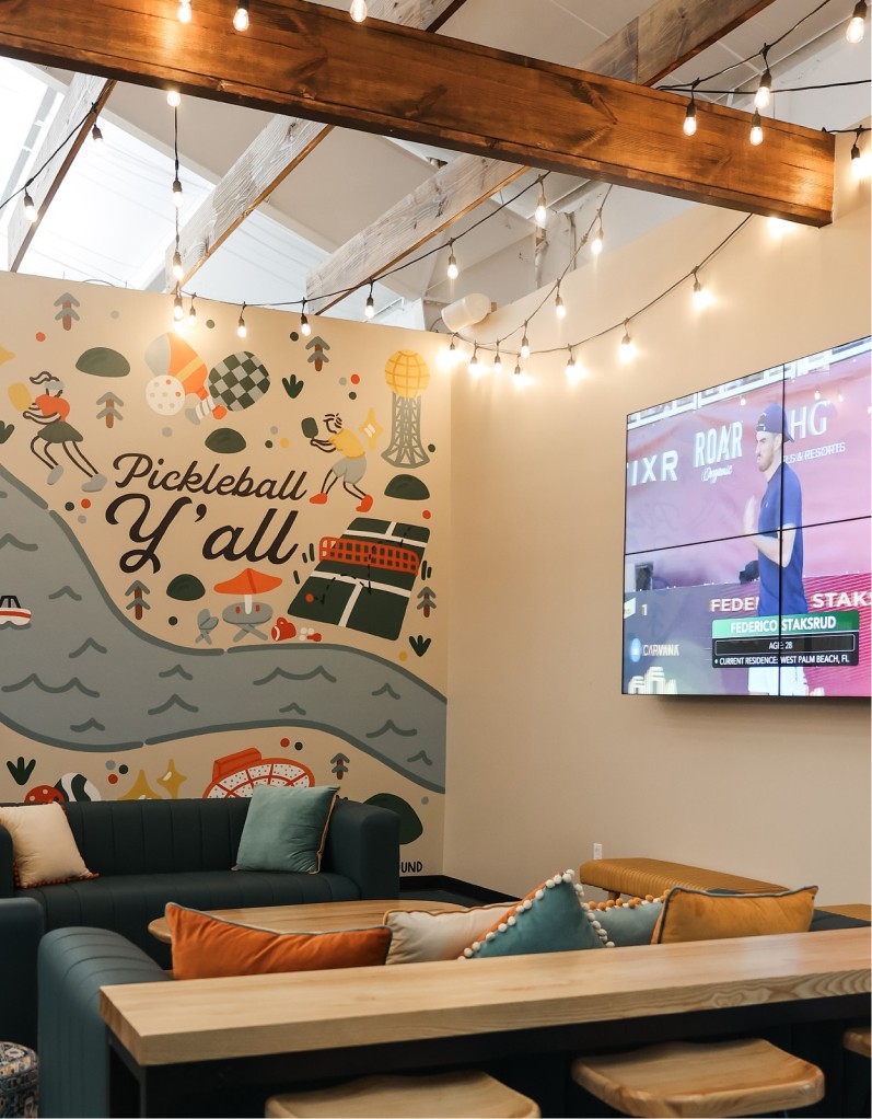 A modern recreational club that blends sport, leisure, and social culture. More “weekend hangout” than traditional athletic facility—designed to feel inviting, vibrant, and slightly nostalgic.