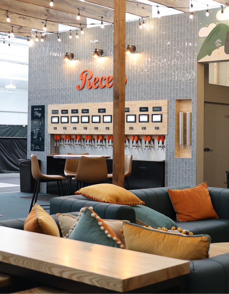 A look at how the different marks and color guide was applied to outdoor signage and indoor finishes – from wall signage to tap design to murals that play off the fun and vintage aesthetic I set up for them.